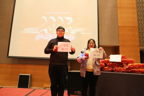 接下來(lái)我們將要抽出本次晚會(huì)的二等獎(jiǎng)兩名!每人一根10g的金條,價(jià)值4500元!