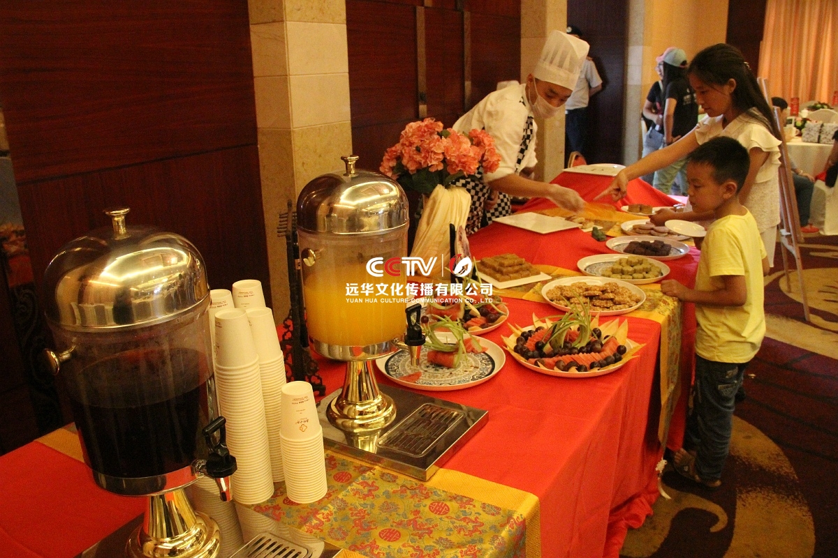 會(huì)場內(nèi)提供精致的中式糕點(diǎn)、水果冷餐供客戶取用